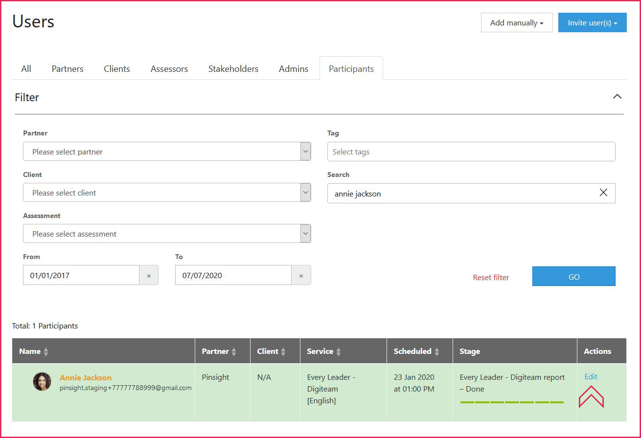| You are a Pinsight admin | You can access all participant reports in the system. |