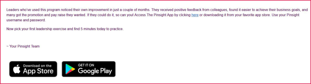 Received an invitation email? This app was designed for high-potential leaders like you, to help you achieve your business and career goals. It is an extension of your Pinsight assessment and was enabled for you by your organization free of charge.