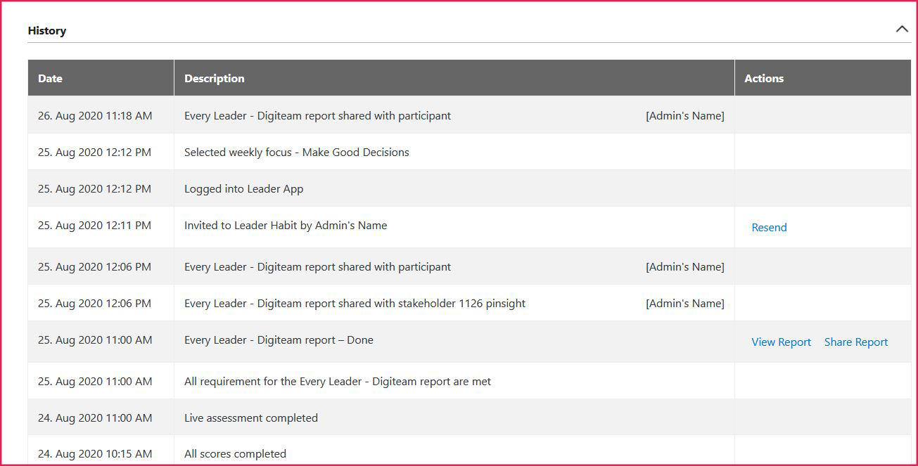 The follow-up assessment feature allows admins to invite participants additional assessments using the same account. After the participant’s report for the first assessment has generated, admins may invite the same participant to a follow-up assessment.