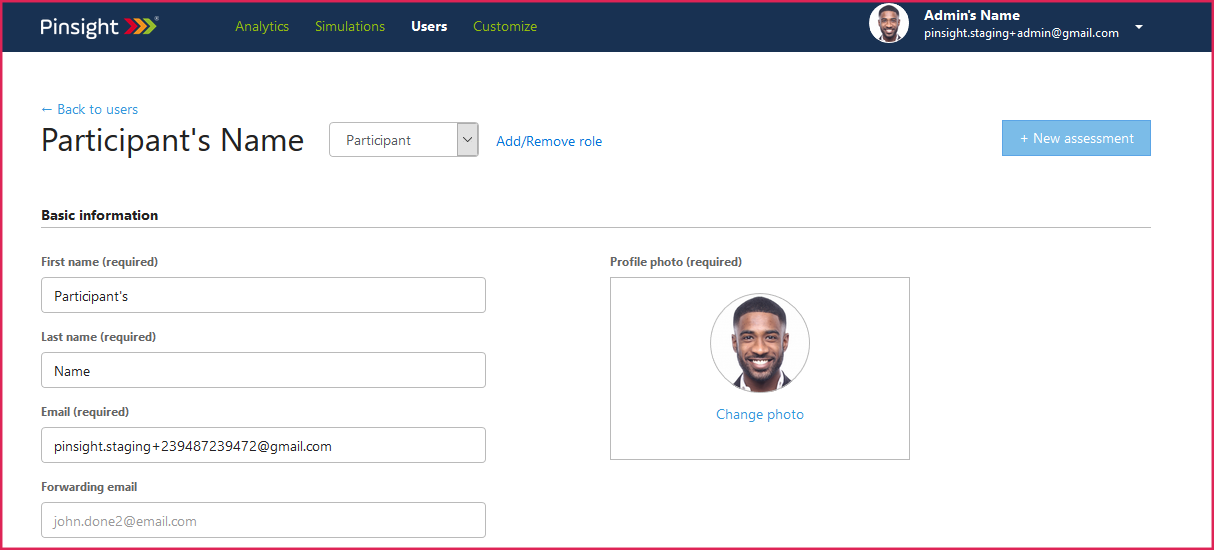 b. Participant profile – +New Assessment button