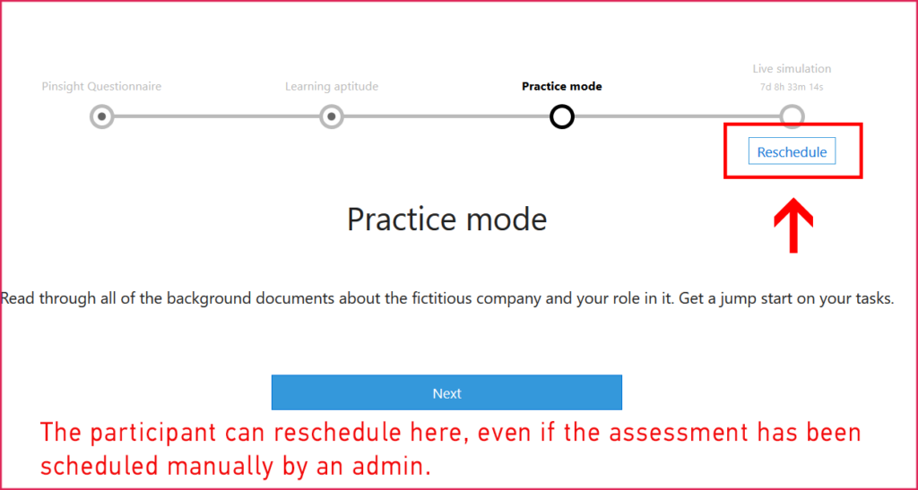 The manual schedule and manual reschedule features on the platform allows admins to schedule or reschedule assessments for the participant, rather than have the participant schedule or reschedule their own assessments.